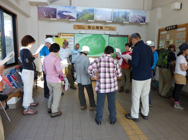 学習内容 大倉~天神平までを往復する過程で装備の装着法、歩き方、脈拍のチェック方法、